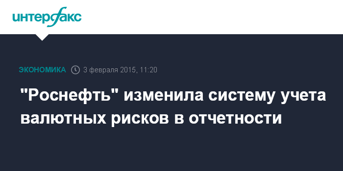 Москва. 3 февраля. INTERFAX.RU - "Роснефть" изменила систему учета валютных рисков в отчетности по МСФО, сообщает компания. Изменения произошли с 1 октября 2014 года. "Валютные риски будут влиять на консолидированные показатели компании только когда риск будет фактически материализован", - говорится в сообщении.