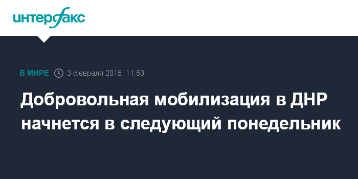 Москва. 3 февраля. INTERFAX.RU - Минобороны самопровозглашенной ДНР начнет мобилизацию на территории республики со следующей недели.