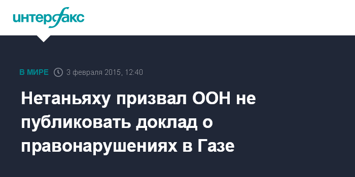 "Теперь необходимо аннулировать публикацию доклада, подготовленного по инициативе Совета по правам человека ООН, антиизраильского органа, который своими решениями продемонстрировал, что не имеет ничего общего с правами человека", - приводят израильские СМИ слова Нетаньяху.