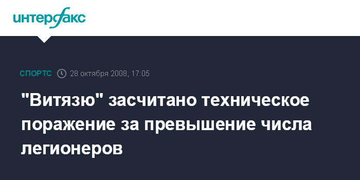 "Витязь" был наказан за превышение числа легионеров в заявке на встречу. В соответствии с регламентом чемпионата КХЛ, в заявке команды клуба на отдельно взятый матч не может быть более четырех хоккеистов-иностранцев, независимо от игрового амплуа. В игре против "Трактора" за команду "Витязь", которая победила со счетом 3:1, выступали сразу пять легионеров - Волзер, Веро, Перро, Спайло и Саймон. "Витязь" также оштрафован на 500 тыс. рублей.