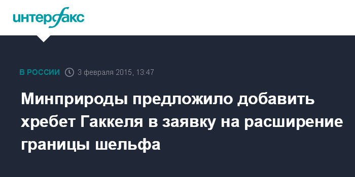 Москва. 3 февраля. INTERFAX.RU - Россия может добавить хребет Гаккеля в заявку на расширение границы континентального шельфа в Арктике, говорится в материалах Минприроды.