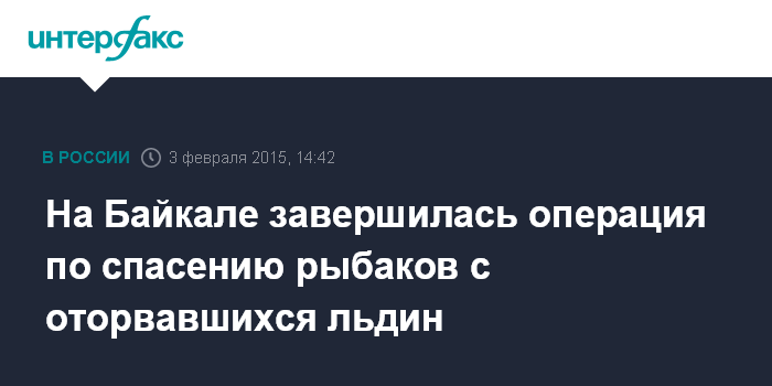 Москва. 3 февраля. INTERFAX.RU - Все рыбаки с оторвавшихся на Байкале в Бурятии льдин доставлены на берег, сообщает пресс-служба Сибирского регионального центра МЧС.