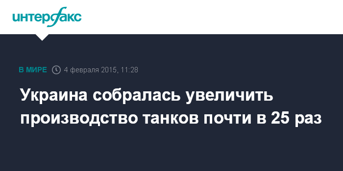 Москва. 4 февраля. INTERFAX.RU - Государственный концерн "Укроборонпром" планирует увеличить производство украинских танков почти в 25 раз - с 5 до 120 единиц ежегодно к 2016 году, заявил генеральный директор Концерна Роман Романов.