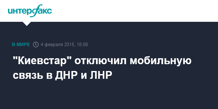 Москва. 4 февраля. INTERFAX.RU - АО "Киевстар" отключил сегмент сети мобильной связи на части территорий Донецкой и Луганской областей.