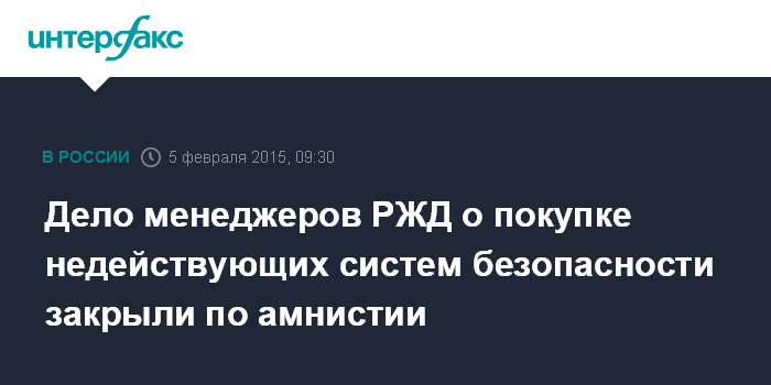 Дело менеджеров РЖД о покупке недействующих систем безопасности закрыли по амнистии