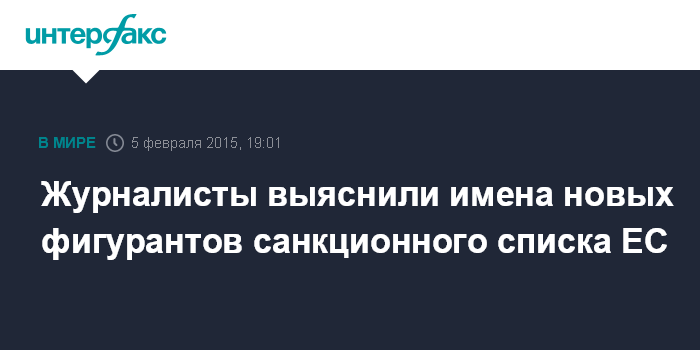 Как сообщалось, комитет постоянных представителей стран ЕС согласовал для утверждения на Совете ЕС 9 февраля дополнения к санкционному списку из 19 физических и девяти юридических лиц.