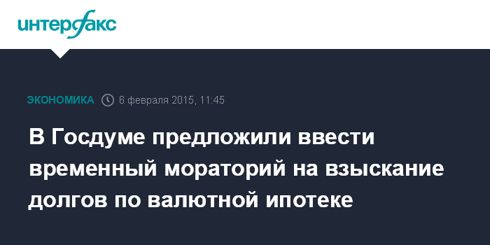 В Госдуме предложили ввести временный мораторий на взыскание долгов по валютной ипотеке