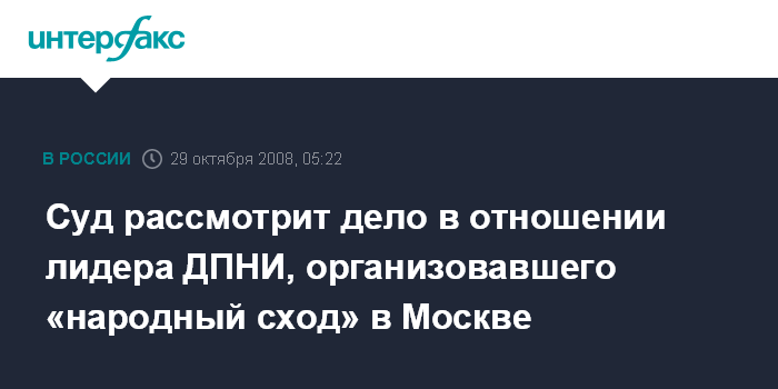 Суд рассмотрит дело в отношении лидера ДПНИ, организовавшего «народный сход» в Москве