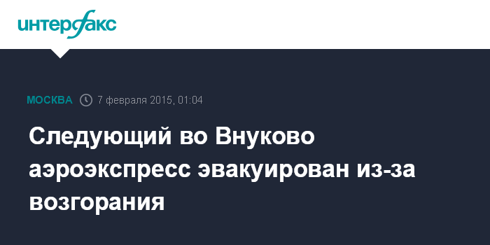 Москва. 7 февраля. INTERFAX.RU - Пассажиры аэроэкспресса, следующего в аэропорт Внуково, выведены на станции из-за загорания обшивки вагона, сообщил "Интерфаксу" источник в правоохранительных органах