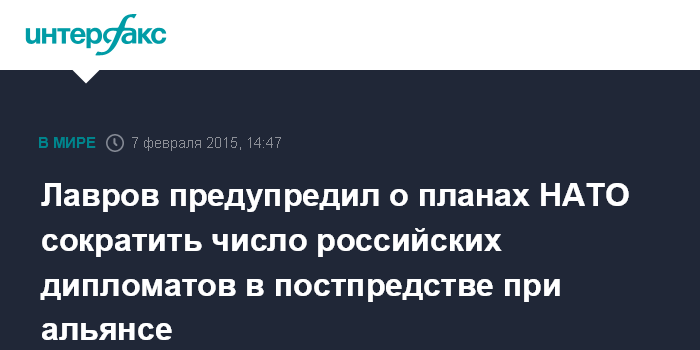 "Сейчас возникает проблема. Наши натовские коллеги хотят сократить физическое присутствие российских дипломатов в нашем представительстве, ограничивают нам уже доступ в штаб-квартиру, где есть наше помещение. Наверное, это будет способствовать дополнительному появлению темных пятен в наших отношениях, и не будет помогать прояснять намерения друг друга", - сказал глава МИД РФ Сергей Лавров, выступая на Мюнхенской конференции по безопасности.