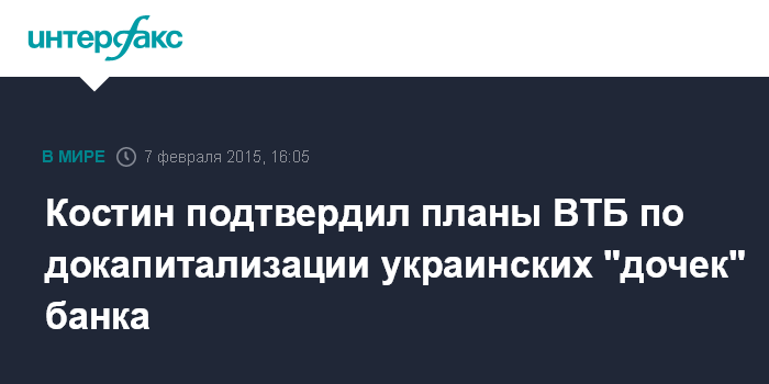 Москва. 7 февраля. INTERFAX.RU - Глава ВТБ Андрей Костин подтвердил планы по докапитализации дочерних структур на Украине, бизнес в республике на фоне происходящих событий оставлять не планируется.