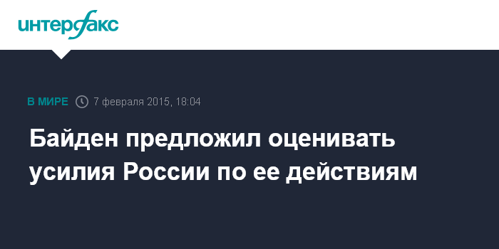 Москва. 7 февраля. INTERFAX.RU - Вице-президент США Джозеф Байден считает, что усилия России по урегулированию украинского конфликта необходимо оценивать по ее действиям, а не подписанным документам.