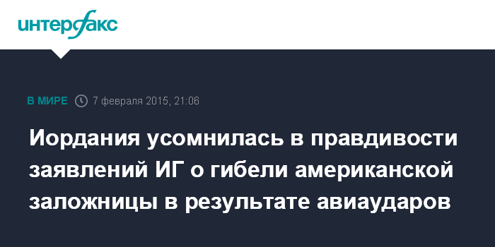 Иордания усомнилась в правдивости заявлений ИГ о гибели американской заложницы в результате авиаударов