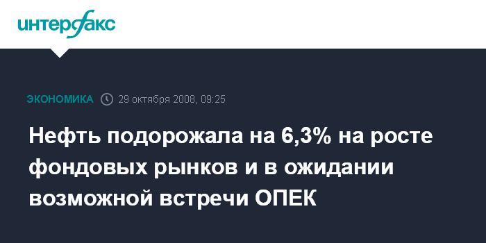 Москва. 29 октября. INTERFAX.RU - Нефть дорожает на росте фондовых рынков и в ожидании возможной встречи ОПЕК, сообщило агентство Bloomberg.