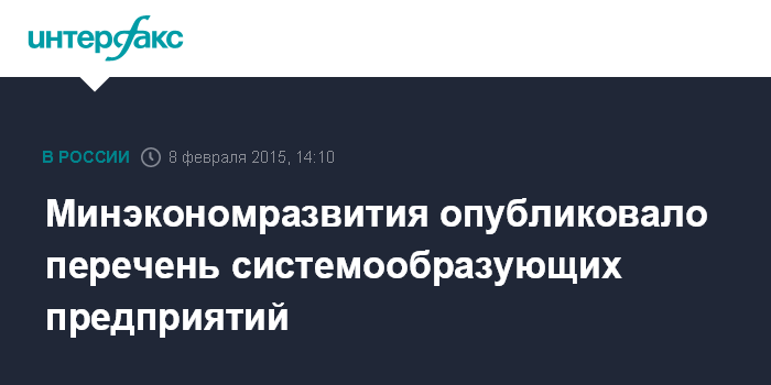 Минэкономразвития опубликовало перечень системообразующих предприятий