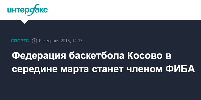 Москва. 8 февраля. INTERFAX.RU - Федерация баскетбола Косово в середине марта станет полноправным членом Международной федерации баскетбола (ФИБА), сообщает novosti.rs.