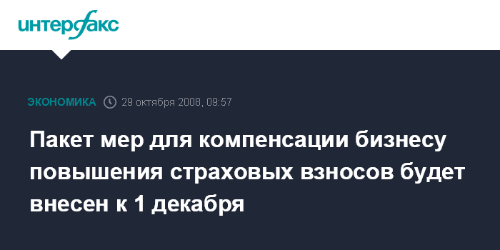 Москва. 29 октября. INTERFAX.RU - Пакет мер, компенсирующих бизнесу повышение ставок взносов на пенсионное, медицинское и социальное страхование, будет внесен до 1 декабря, сообщил помощник президента РФ Аркадий Дворкович, выступая на налоговом семинаре, организованном Американской торговой палатой.