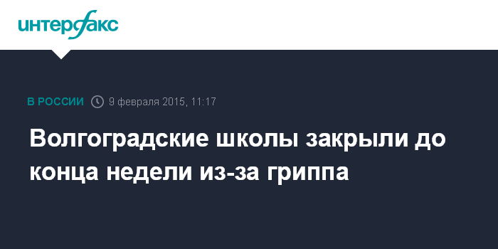 Москва. 9 февраля. INTERFAX.RU - Школы Волгограда постановлением главного государственного санврача региона закрыты на карантин до 15 февраля включительно, сообщает пресс-служба областного управления Роспотребнадзора.