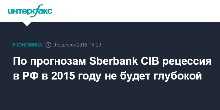 По прогнозам Sberbank CIB рецессия в РФ в 2015 году не будет глубокой