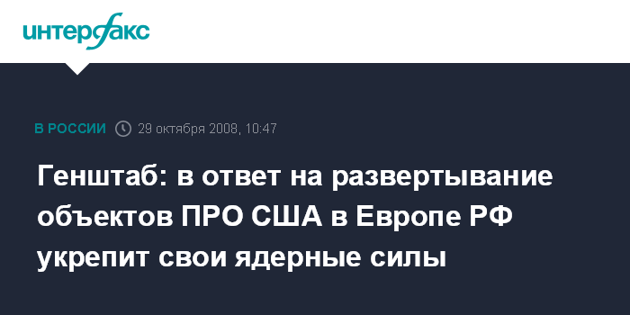 Генштаб: в ответ на развертывание объектов ПРО США в Европе РФ укрепит свои ядерные силы