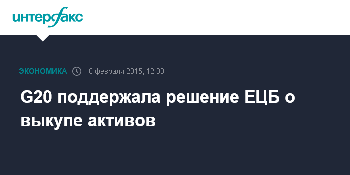 Москва. 10 февраля. INTERFAX.RU - Финансовая G20 поддержала решение Европейского центрального банка, который в январе объявил о программе выкупа активов.