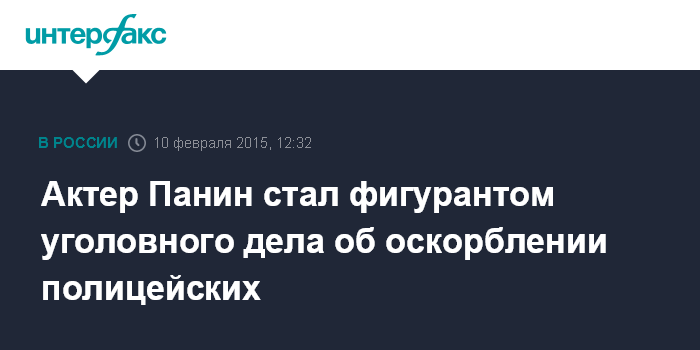 Москва. 10 февраля. INTERFAX.RU - Следователи возбудили в отношении актера Алексея Панина уголовное дело об оскорблении полицейских, сообщает пресс-служба Северо-Западного управления на транспорте СКР во вторник. 38-летний Алексей Панин подозревается в совершении преступления по ст.319 УК РФ (публичное оскорбление представителя власти при исполнении им своих должностных обязанностей).