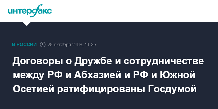 Договоры о Дружбе и сотрудничестве между РФ и Абхазией и РФ и Южной Осетией ратифицированы Госдумой