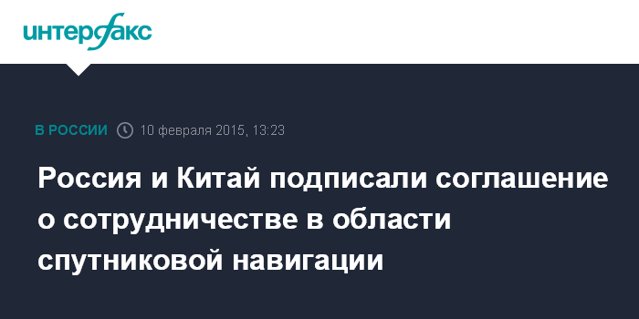 Россия и Китай подписали соглашение о сотрудничестве в области спутниковой навигации