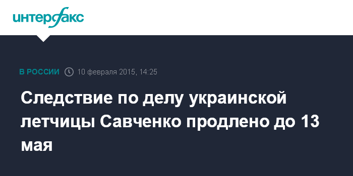 Москва. 10 февраля. INTERFAX.RU - Срок следствия по уголовному делу в отношении украинской летчицы Надежды Савченко, обвиняемой в соучастии в убийстве российских журналистов, продлен до 13 мая.