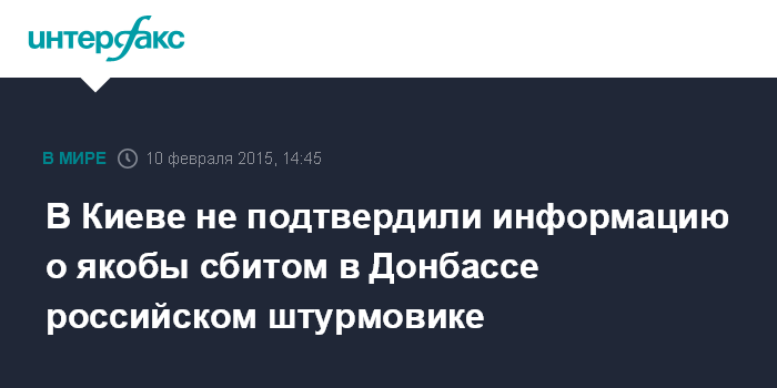 Москва. 10 февраля. INTERFAX.RU - В штабе силовой операции на востоке Украины не подтверждают информацию о том, что бойцам полка "Азов" удалось сбить штурмовик Су-25 российских ВВС вблизи Куйбышево в Донецкой области.