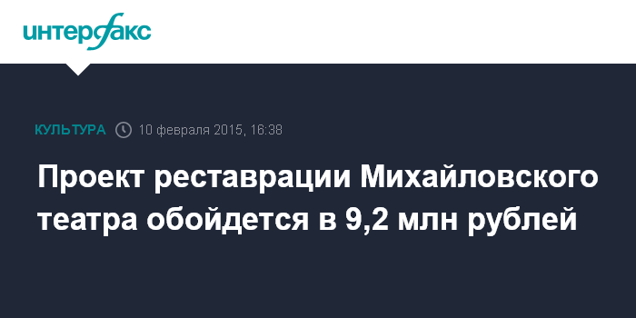 Проект реставрации Михайловского театра обойдется в 9,2 млн рублей