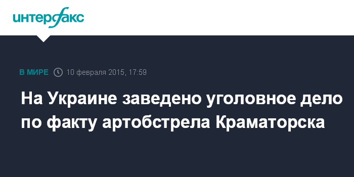 Москва. 10 февраля. INTERFAX.RU - Главная военная прокуратура Украины в связи с артиллерийским обстрелом Краматорска открыла уголовное производство по статье УК "террористический акт".