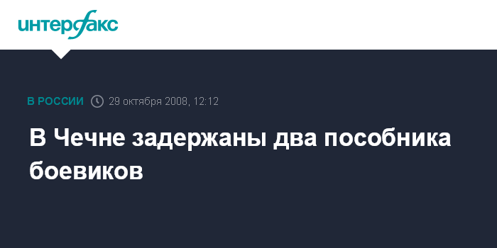 Москва. 29 октября. INTERFAX.RU - В Чечне задержаны пособники участников незаконных вооруженных формирований (НВФ), сообщили "Интерфаксу" в пресс-службе МВД по Чечне. "В ходе проведенных оперативно-разыскных мероприятий милиционерами, а также сотрудниками УФСБ по Чеченской Республике в селе Гойты Урус-Мартановского района задержаны два пособника членов НВФ", - отметили в пресс-службе. Один из задержанных является жителем Грозного, второй - Гойты. Оба задержанных - молодые люди, одному из них 20 лет, а второму - 17.