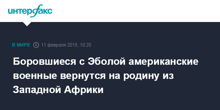 Боровшиеся с Эболой американские военные вернутся на родину из Западной Африки