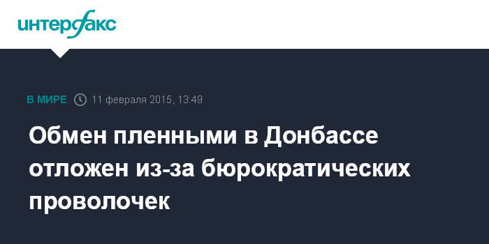 Москва. 11 февраля. INTERFAX.RU - Обмен пленными между ополчением самопровозглашенной Донецкой народной республики и вооруженными силами Украины в среду не состоится, сообщает пресс-служба уполномоченного по правам человека ДНР.