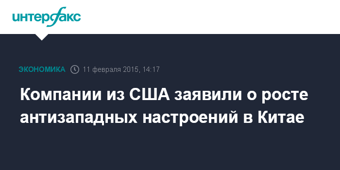 Москва. 11 февраля. INTERFAX.RU – Более половины американских компаний, работающих в Китае, отмечают усиление антизападной политики властей страны, сообщается в ежегодном опросе Торговой палаты США в Пекине.