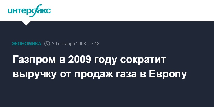 Газпром в 2009 году сократит выручку от продаж газа в Европу