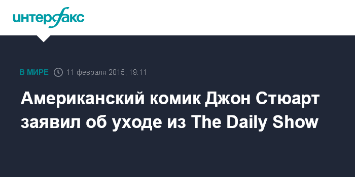 Москва. 11 февраля. INTERFAX.RU - Американский комик Джон Стюарт заявил, что покинет передачу The Daily Show на канале Comedy Central, ведущим которой является с 1999 года.