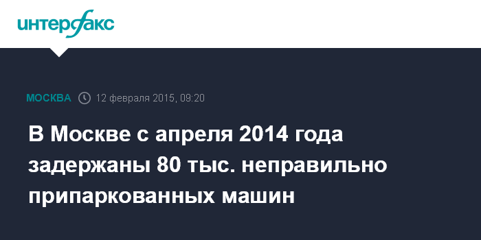 Москва. 12 февраля. INTERFAX.RU - С начала работы инспекторов Московской административной дорожной инспекции (МАДИ) в апреле 2014 года на улицах задержаны 80 тыс. неправильно припаркованных транспортных средств, сообщает пресс-центр столичного департамента транспорта.