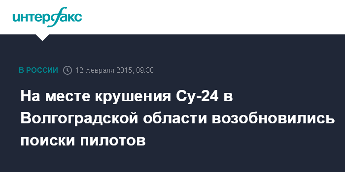 Москва. 12 февраля. INTERFAX.RU - Поисково-спасательные работы возобновились с рассветом в четверг на месте падения фронтового бомбардировщика Су-24М в Волгоградской области, сообщили "Интерфаксу" в силовых структурах.