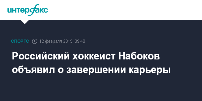 Москва. 12 февраля. INTERFAX.RU - Вратарь хоккейного клуба "Сан-Хосе Шаркс" Евгений Набоков завершил карьеру, сообщила пресс-служба Национальной хоккейной лиги.