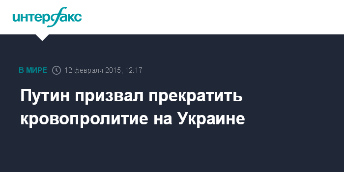 Москва. 12 февраля. INTERFAX.RU - Президент РФ Владимир Путин призвал стороны украинского конфликта к скорейшему прекращению кровопролития.