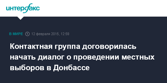 Москва. 12 февраля. INTERFAX.RU - Комплекс мер по выполнению Минских соглашений, подписанный контактной группой в четверг, предусматривает начало диалога о модальностях проведения местных выборов в Донецкой и Луганской областях.