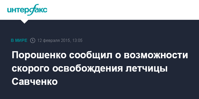 Москва. 12 февраля. INTERFAX.RU - Президент Украины Петр Порошенко на переговорах в Минске поднял вопрос освобождения украинской летчицы Надежды Савченко.