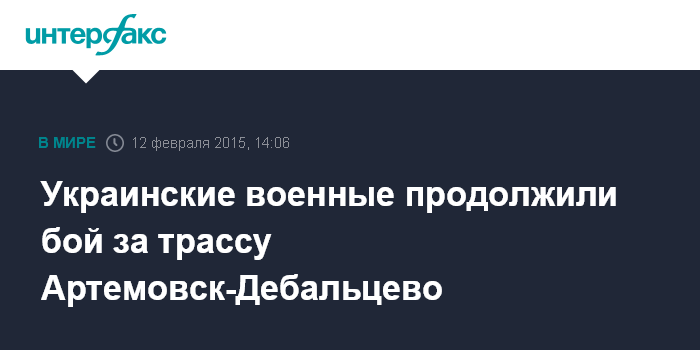 Москва. 12 февраля. INTERFAX.RU - На трассе Артемовск-Дебальцево продолжается бой, ополченцы штурмуют населенный пункт Логиново, сообщил агентству "Интерфакс" народный депутат Украины, командир батальона "Донбасс" Семен Семенченко.