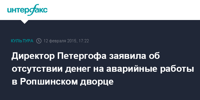 Ранее сообщалось, что в середине января Минкультуры приняло решение о выделении государственному музею заповеднику "Петергоф" 15 млн рублей на проведение противоаварийных работ в Ропшинском дворце, где в ночь на 8 января произошло обрушение колонного портика. На деньги, выделенные министерством, подрядчик должен провести целый комплекс работ: убрать воду из подвала, укрепить конструкцию дворца, разобрать те части исторического здания, которые находятся в опасности, и сделать временную крышу.