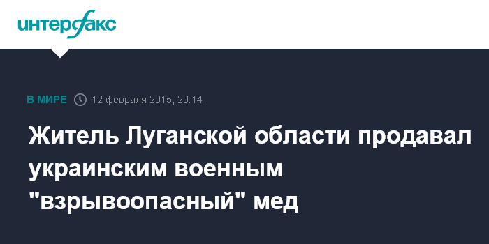 Москва. 12 февраля. INTERFAX.RU - В Луганской области задержан мужчина, который в январе "угостил" украинских военных банкой меда, начиненной взрывчаткой, сообщил советник главы Службы безопасности Украины Маркиян Лубкивский.