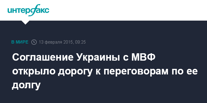 Москва. 13 февраля. INTERFAX.RU - Украина после одобрения Международным валютным фондом (МВФ) новой кредитной программы сможет начать переговоры с держателями суверенных облигаций, однако пока не ясно, пойдет ли речь в ходе этих консультаций, которые могут начаться в марте, только о рассрочке или же и о реструктуризации украинского долга.