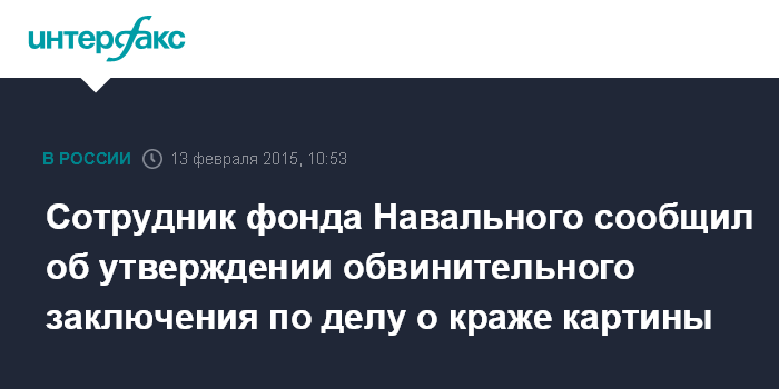 Сотрудник фонда Навального сообщил об утверждении обвинительного заключения по делу о краже картины