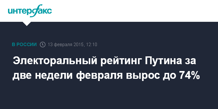 Электоральный рейтинг Путина за две недели февраля вырос до 74%